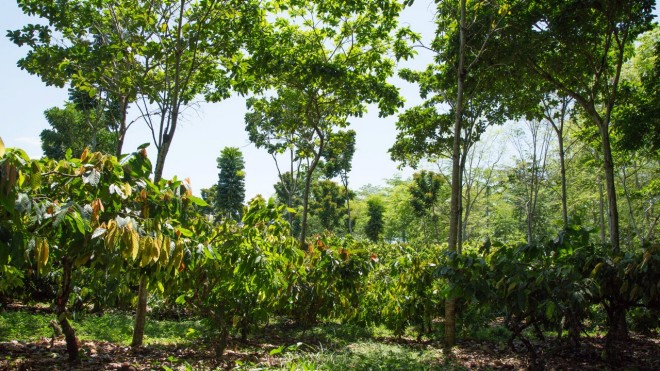 In early 2019, we launched new reforestation projects in Ghana and Ecuador. They are the world’s first projects that combine cocoa cultivation in dynamic agroforestry with Gold Standard carbon insets. The Gold Standard is the strictest standard for climate protection projects. Coop is contributing to this DAF project in Ecuador, where highly diversified DAF cocoa cultivation systems have been established, including not only cocoa trees but also a variety of fruit and timber trees. It is estimated that by 2029, the trees will have sequestered 56 000 tonnes of CO₂e over 800 hectares. With this commitment, Coop is taking responsibility for emissions generated by airfreight, delivery journeys (coop.ch) and business trips.