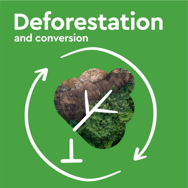 Forests, particularly rainforests, are being cut down worldwide for agriculture, converting natural ecosystems into farmland. In the tropics in particular, poverty and social inequality drive people in search of farmland into forested areas, where forests are cleared and subsequently used for agriculture. Timber, cocoa, coffee, soya, rubber and palm oil production, along with cattle farming, are among the main causes of global rainforest deforestation. Out of the raw materials used in Switzerland which contribute most to global deforestation, cocoa ranks second. The preservation of biodiversity, the protection of natural resources, and environment and climate protection are anchored in the Coop Sustainability Strategy and taken very seriously by HALBA. Public debate has triggered discussions among policymakers and legislative proposals for deforestation-free supply chains. In the EU, the EU Deforestation Regulation (EUDR) came into force on 29 June 2023. A ban on the sale and trade of raw materials and products that contribute to deforestation or conversion will come into force on 30 December 2025. The EUDR applies to wood, cocoa, coffee, soy, cattle, rubber, palm oil and some derivative products (e.g. chocolate, furniture).