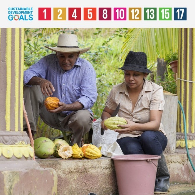 In many places, cocoa is grown as a monoculture. Farmers choose this approach in order to generate higher yields and, as such, higher incomes. After a few years of monoculture farming, however, the practice has a negative impact on soil fertility: the soil becomes depleted and the cocoa plants become more vulnerable to pests and disease. As a result, yields decrease. Farmers seek to make up for the deficiency using mineral fertilisers and pesticides, but this does not have the desired effect in the medium and long term. Instead, it harms the environment.