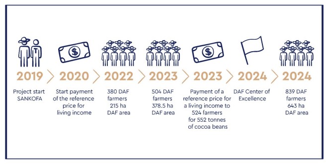 A number of major hurdles in the fields of human rights, economic viability and environmental protection need to be resolved when procuring sustainably produced cocoa. The main problem is cocoa farmer poverty. They have to deal with low and volatile cocoa prices, declining soil fertility, excessively small allotments and climate change. Constant increases in the cost of living also exacerbate their situation. In many cases, poverty results in abusive child labour. When yields decline on cocoa plots, the use of agrochemicals is often considered the first solution. As their next step, they then clear new forest. This leads to health risks and environmental damage, and also acts as a driver for climate change: cocoa production is the cause of one of the highest deforestation rates in the world. Not all farmers can benefit to the same extent from the current high world market prices for cocoa. Close cooperation with the cocoa cooperatives therefore continues to be of great importance to HALBA.