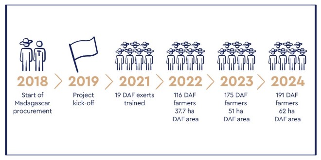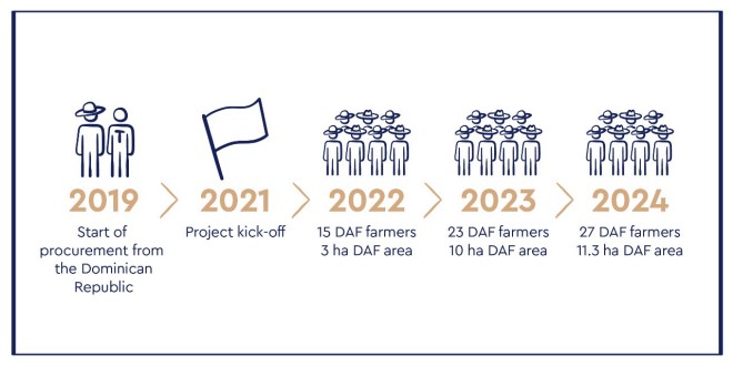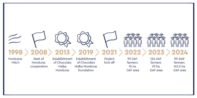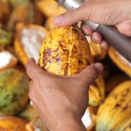 HALBA sources 45 % of its cocoa beans from Ghana, and the remainder from Ecuador, Honduras, Peru, the Dominican Republic and Madagascar. In all of these countries, HALBA is pursuing various initiatives in order to improve conditions for people and the environment. These include cocoa bean certification, direct procurement, transparency and supply chain traceability. Direct procurement from smallholder organisations means that intermediaries can be avoided, and farmers receive a higher proportion of the purchase price. Long-term contracts and clear guidelines create trust and planning security. HALBA is committed to ensuring better local conditions by offering interest-free advance financing. Farm mapping is carried out in conjunction with local cooperatives in order to ensure transparency within the value chain through to primary level. A core element of these fundamental improvement initiatives for HALBA is the promotion of an alternative growing method, which successfully addresses various problems associated with cocoa production: dynamic agroforestry (DAF). DAF focuses on optimising the system as a whole and not maximising individual crops such as cocoa. HALBA is implementing projects in this area in Ghana, Ecuador, Honduras, the Dominican Republic and Madagascar. HALBA also actively supports projects to ensure a living income and to protect children, in particular in Ghana.