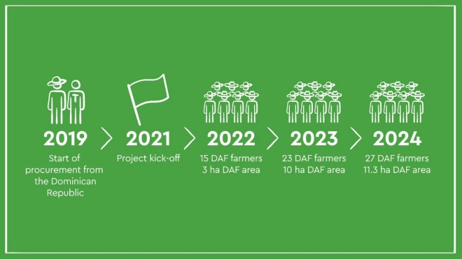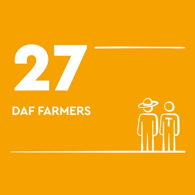 27 small-scale cocoa farmers are cultivating their land under DAF conditions, totaling around 11.3 hectares.