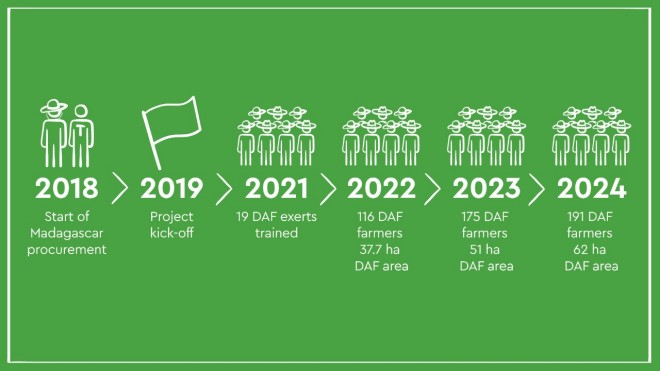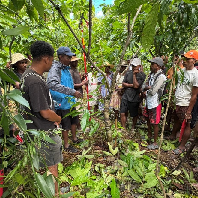 With DAF, farmers can grow a wide range of other food products in addition to vanilla and cocoa all year round on less land, which yields them a higher income and ensures that their food needs are met. At the same time, forests that are essential for biodiversity are retained and protected. In the second phase of the project (2025–2028), the plan is to triple the number of cocoa farmers from 212 to 662 and expand the DAF cultivation area from 52 to 162 hectares. To improve supply chain management and the marketing of by-products, a conservation enterprise will be established to give 80 % of project farmers access to markets for their DAF products. The sustainability project also supports both cooperatives in improving their organisational structures and expanding the cocoa value chain. The management and operational capacity of the cooperatives and post-harvest processes are also to be further strengthened.