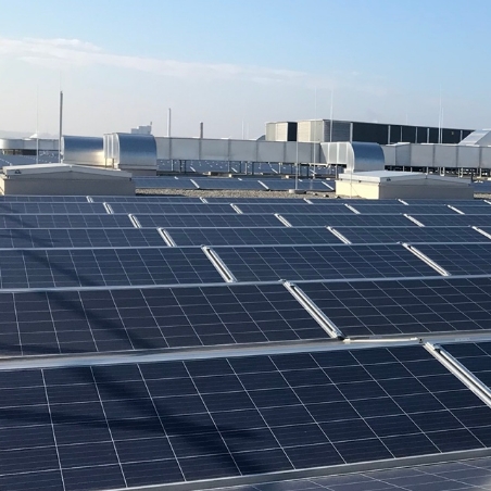 In order to effectively use the building’s roof areas, a photovoltaic plant extending over about 8 000 square metres has been installed. The photovoltaic plant has a power output of 550 kilowatt hours. In 2024, it produced 471 627 kilowatt hours of solar power, which is used directly on site. This roughly corresponds to the annual consumption of 150 detached houses.