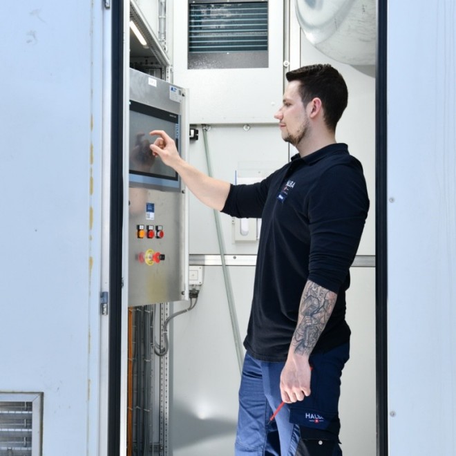 We use the waste heat from our cooling systems amongst other things in order to heat office space. These systems also provide cold water for the site. The cooling process generates waste heat, which is collected via a heat exchanger. The energy thereby gained is fed through into the heating circuit. As a result, 10 297 496 kilowatt hours of energy were saved in 2024. In addition, HALBA uses the heat generated by computers or people in office areas. It is extracted by an air heat exchanger and then returned to the air intake, creating an additional heat cycle.