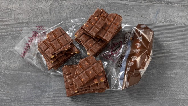 The imperfect chocolate produced during processing cannot be sold through the usual sales channels. However, as this chocolate is perfectly safe to eat, HALBA sells it at a lower price in its Schoggihüsli – the two factory shops at the production sites in Pratteln and Hinwil.