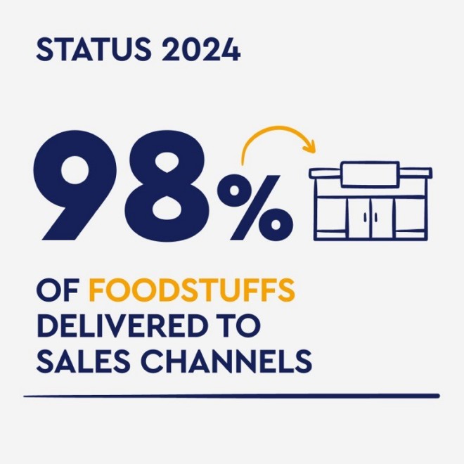 We implement a number of waste-reduction measures to achieve our goal of getting at least 98 % of the produced food into our sales channels. An interdisciplinary working group for food waste reduction coordinates these measures, and the departments concerned implement them. To prevent food waste, we use the following hierarchy as a guide: Avoid – Reuse – Donate – Utilise.