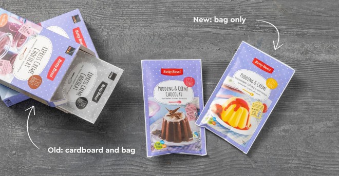 We make a concerted effort to reduce the use of packaging materials wherever possible, continuously reviewing our range with a view to reducing packaging sizes, making materials thinner and eliminating multi-item packaging. In chocolate and snack production, we regularly implement initiatives in our production processes to minimise packaging waste. By way of example, we have eliminated the cardboard outer packaging for our baked goods.